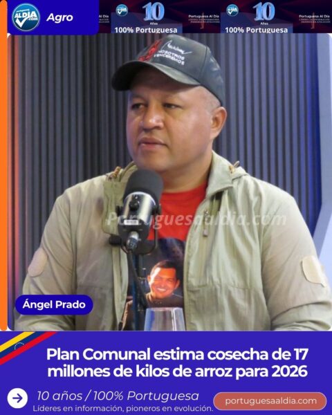 El ministro Ángel Prado destacó la proyección productiva para el ciclo norte-verano entre los meses de marzo y abril El ministro del Poder Popular para las Comunas y Movimientos Sociales, Ángel Prado, informó que para el presente año 2026 se proyecta una cosecha de 17 millones de kilos de arroz