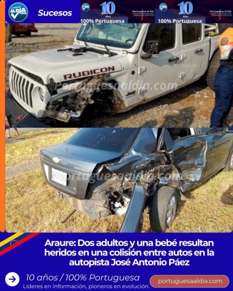 (Miguel Enrique Villavicencio).- Una colisión entre dos vehículos que se registró este lunes 2 de febrero en la autopista José Antonio Páez, dejó a tres personas heridas, entre estas, una bebé de apenas 5 meses de nacido. Este accidente vial ocurrió a la altura del sector Tapa de Piedra del