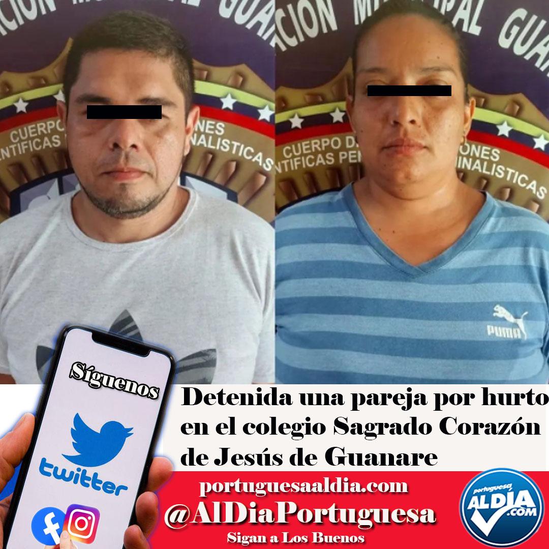 Detenida una pareja por hurto en el colegio Sagrado Corazón de Jesús de Guanare #09May #Portuguesa #PortuguesaAlDia #Acarigua #Guanare #Turen #Araure #Ospino #9Mayo #Lara #Barinas #Cojedes #Venezuela #9May #EtiquetaDelDía #VenezuelaEsPaz