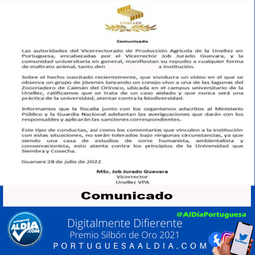 Se recibe este video donde un grupo de jóvenes lanzan un conejo hacia una laguna con Caimanes, Según el DENUNCIANTE indica que esto habría ocurrido en la Universidad Nacional Experimental…
