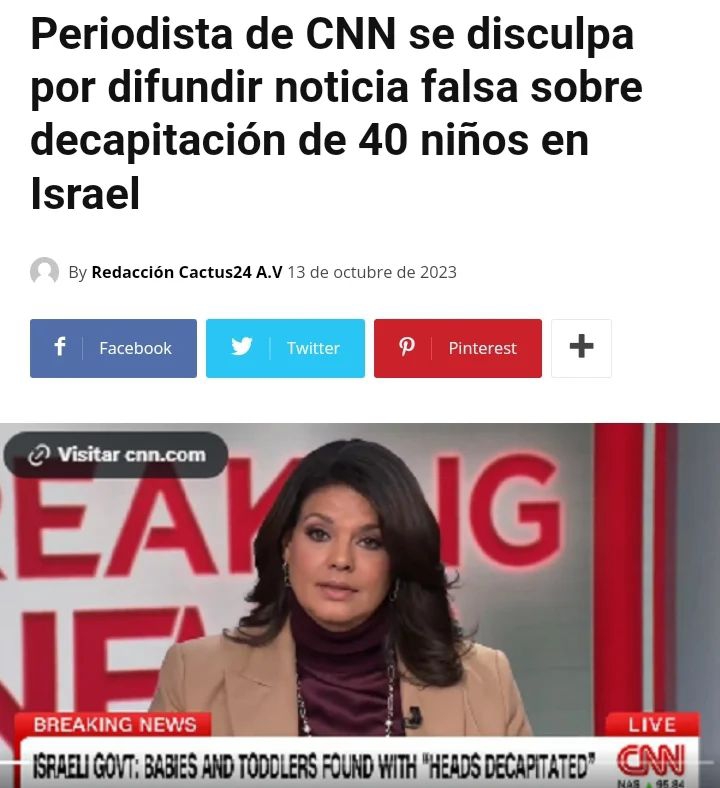 La periodista de la cadena de noticias CNN, Sara Sinder, quien el pasado 11 de octubre, había informado que en Kfar Aza, en el sur de #Israel, encontraron bebés y…