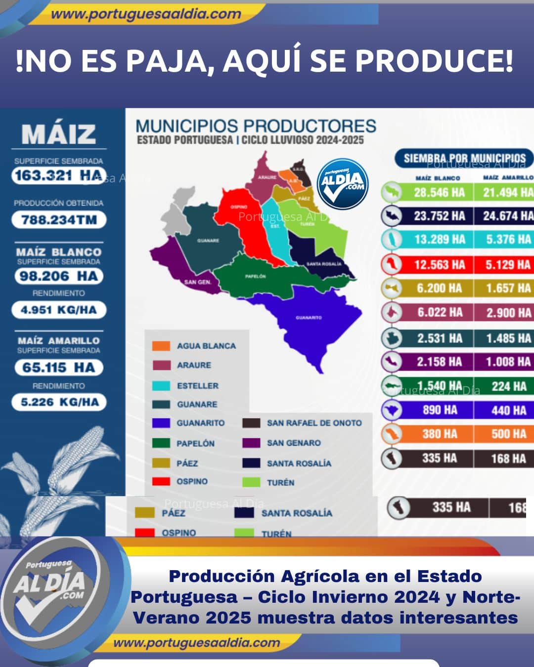 Producción Agrícola en el Estado Portuguesa – Ciclo Invierno 2024 y Norte-Verano 2025 muestra datos interesantes, sépalos aquí