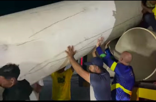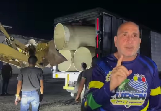 El alcalde de Turén, Onofrio Cavallo junto a la primera dama del municipio, dio a conocer que en horas de la madrugada del jueves recibió la tubería de 40 pulgadas que requerían para la reparación total del colector principal de la jurisdicción.