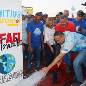El gobernador Primitivo Cedeño en compañía del alcalde Rafael Torrealba, expresó que con estos nuevos pozos se incorporan más de 27 millones de litros de agua a la red de distribución, lo que brindará calidad de vida a estas familias que por años padecieron la falta del vital líquido.