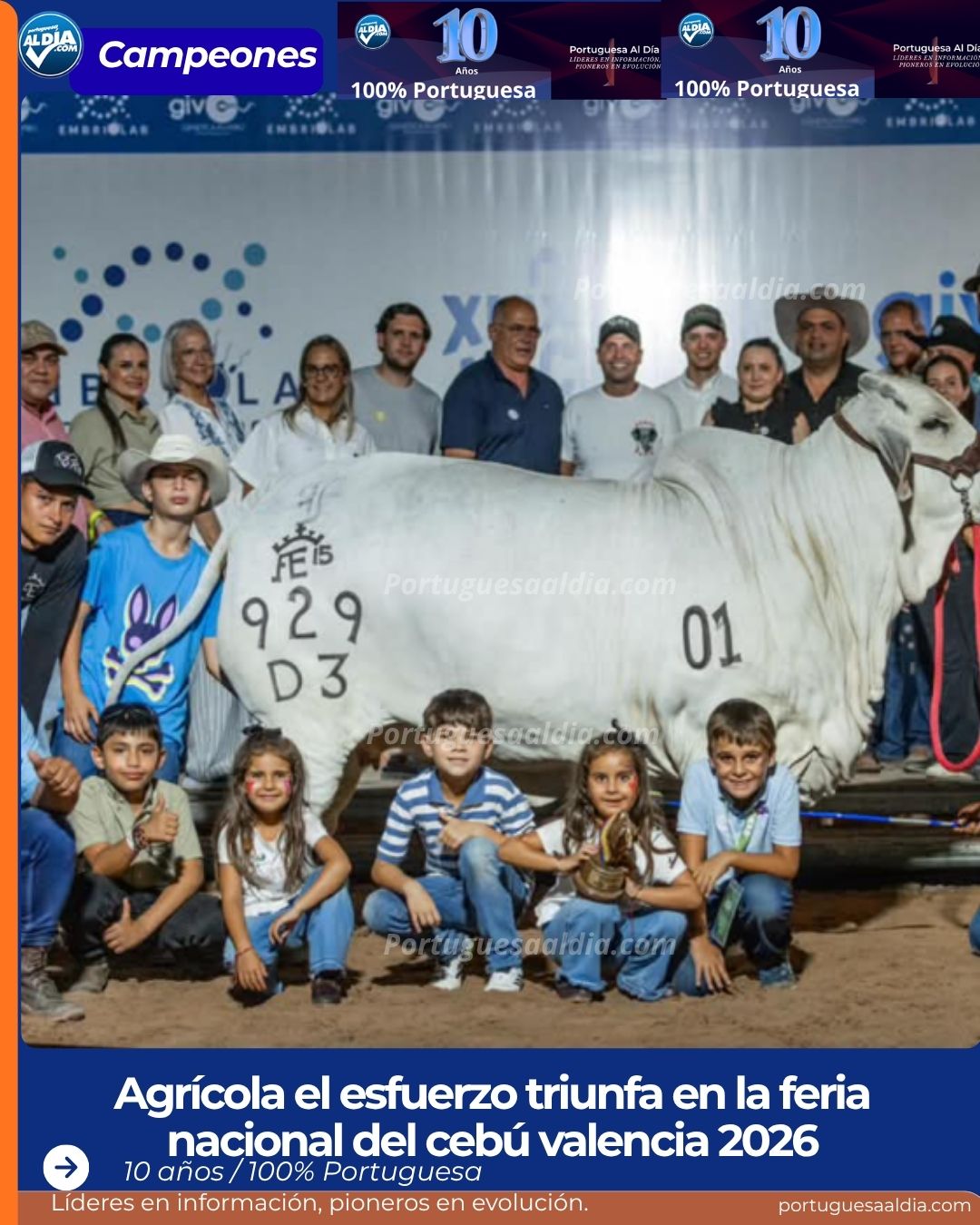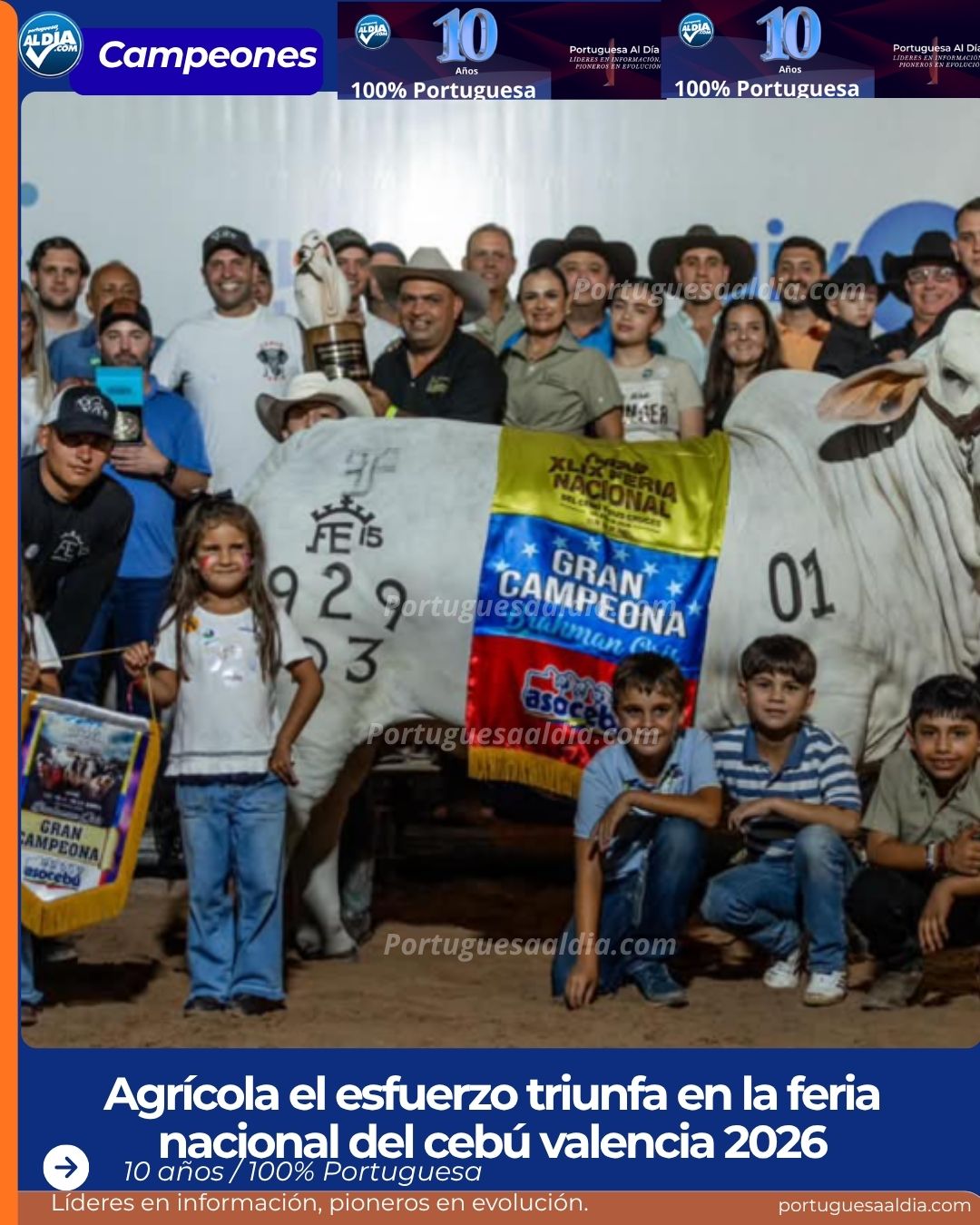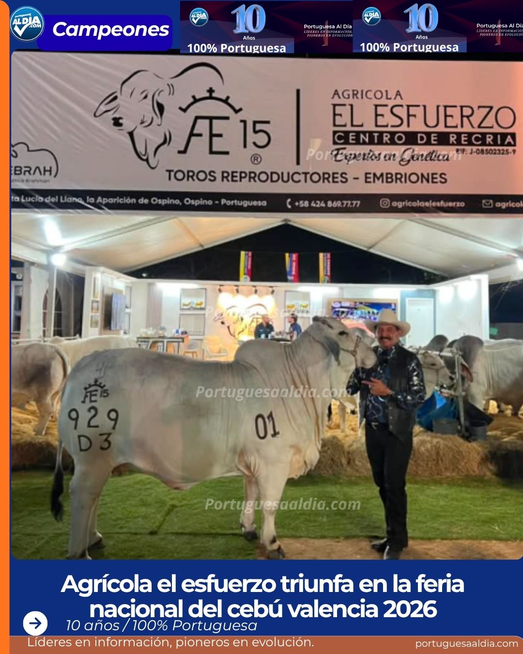 La ganadería de Portuguesa sigue consolidando su prestigio nacional tras los resultados obtenidos en la XLIX Feria Nacional del Cebú y sus Cruces, celebrada en Valencia. La unidad de producción Agrícola El Esfuerzo, ubicada en el municipio Ospino, logró alzarse con el máximo galardón gracias al desempeño de su ejemplar SJ Retiro Macarena 929, la cual fue coronada como la Gran Campeona del certamen.
