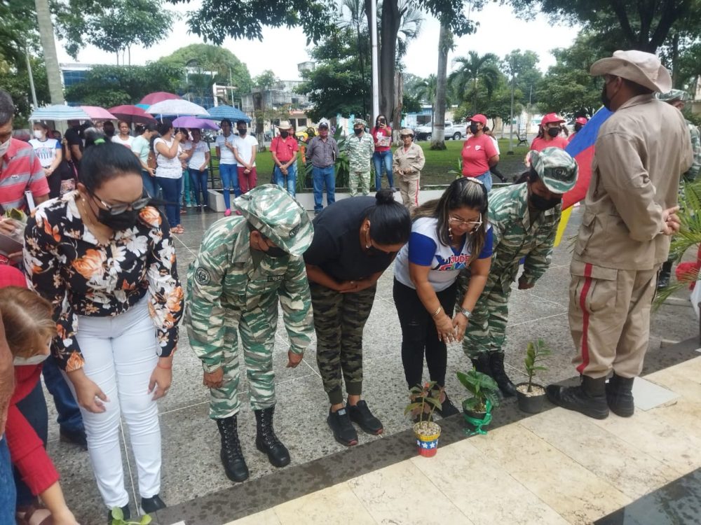 Hoy honramos desde nuestra icónica Plaza Bolívar, junto al Poder Popular, Milicia Bolivariana, equipo de gobierno y equipo político, con una ofrenda Ecológica, esta memorable fecha fijada, en el Decreto N° 4.754 que instituyó como «Día de la Bandera Nacional».
