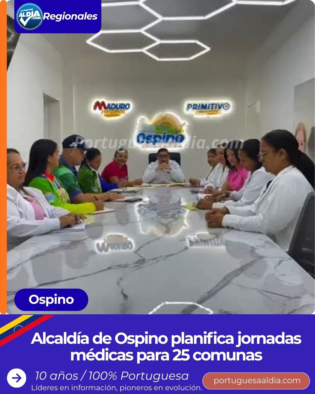 El alcalde del municipio Ospino, Yongeiby Yépez, sostuvo un encuentro estratégico con el equipo de salud local para organizar el nuevo plan de atención al ciudadano. Esta iniciativa contempla el despliegue de jornadas médicas integrales en cada uno de los territorios, priorizando el bienestar social de los habitantes. Según las proyecciones gubernamentales, las 25 comunas y las 219 comunidades de la jurisdicción serán atendidas de manera progresiva durante este primer semestre del año 2026.
