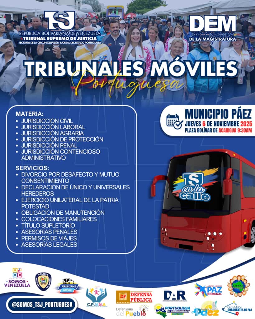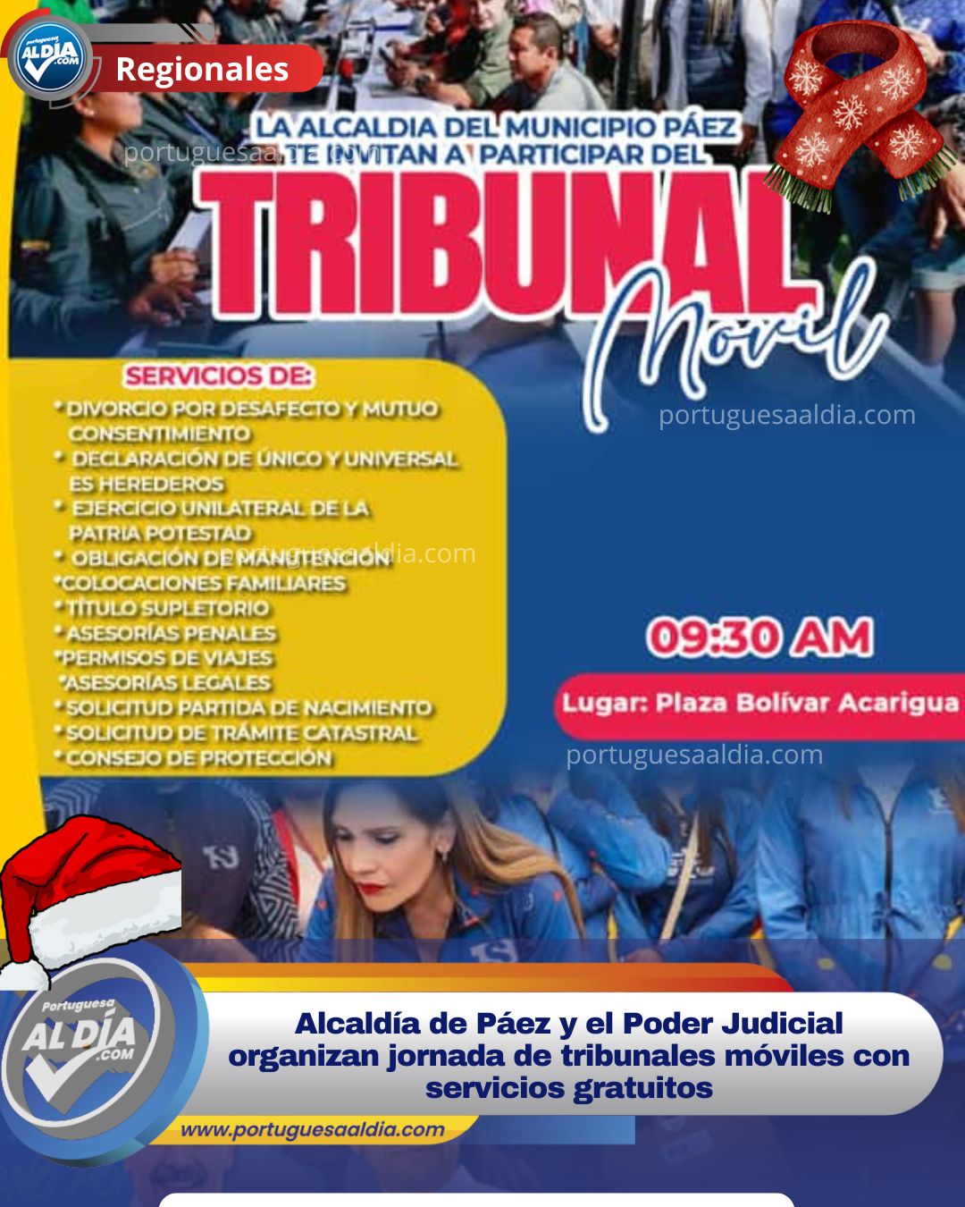 La Alcaldía de Páez acerca la justicia a la comunidad con una jornada especial este 6 de noviembre. Los tribunales móviles ofrecerán asesorías y trámites legales sin costo en la Plaza Bolívar, facilitando el acceso a procedimientos familiares, civiles y documentales.