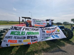 Los manifestantes están exigiendo la intervención del ministerio de agricultura producción y tierras y del presidente Nicolás Maduro por qué consideran justa la lucha de un precio acorde.