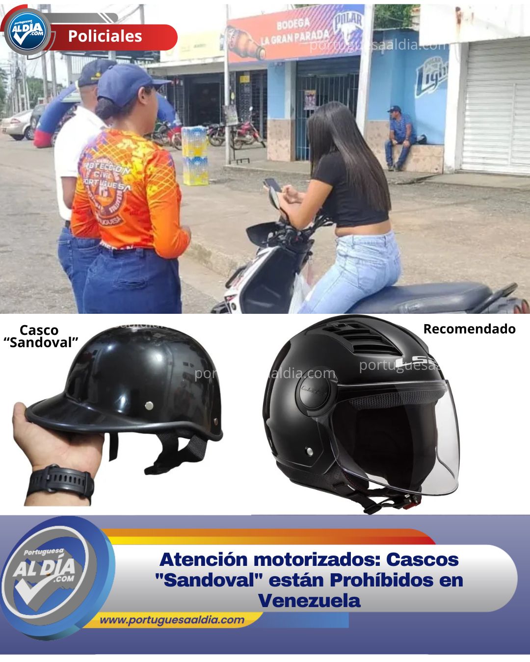 El Instituto Nacional de Tránsito Terrestre (INTT), en conjunto con la Fiscalía General liderada por Tarek William Saab, anunció en agosto de 2025 la prohibición nacional del uso de cascos tipo «Sandoval» para motorizados. La campaña, denominada «Si enciendes tu moto, no apagues tu vida», busca promover el uso exclusivo de cascos integrales o semi-integrales certificados, argumentando que estos ofrecen mayor protección en accidentes viales.