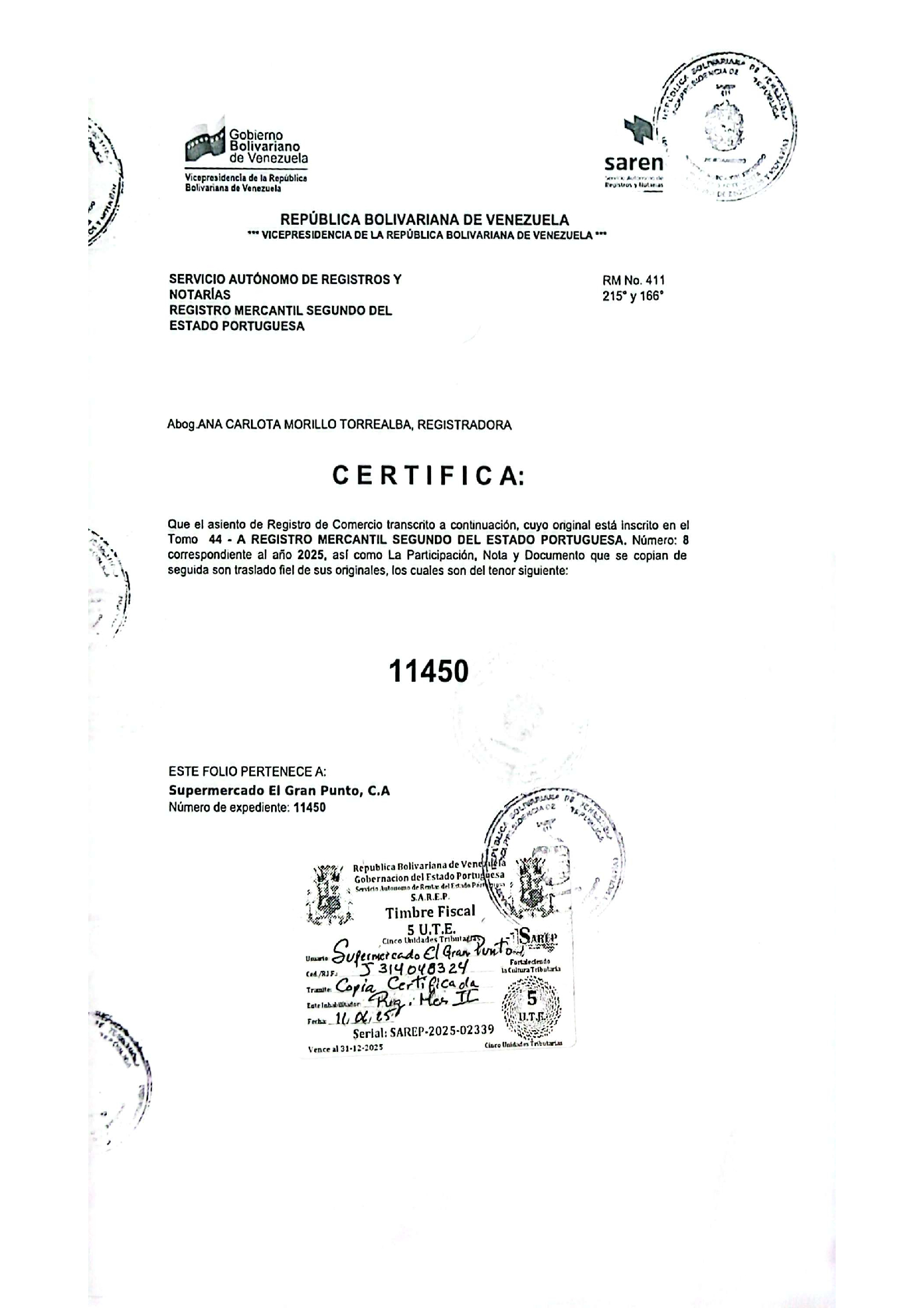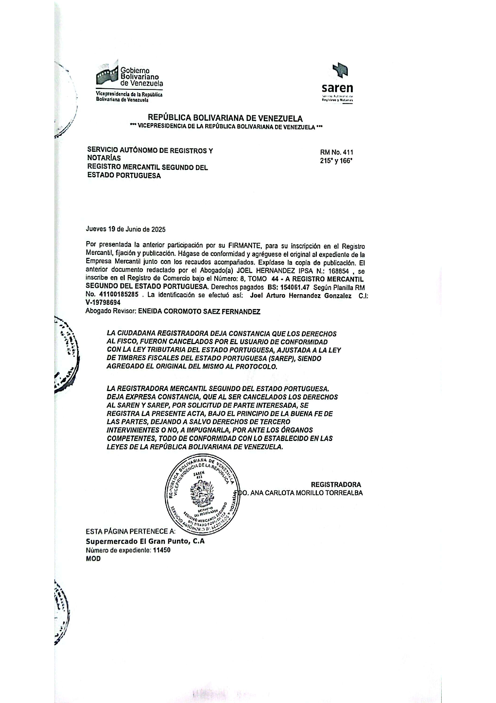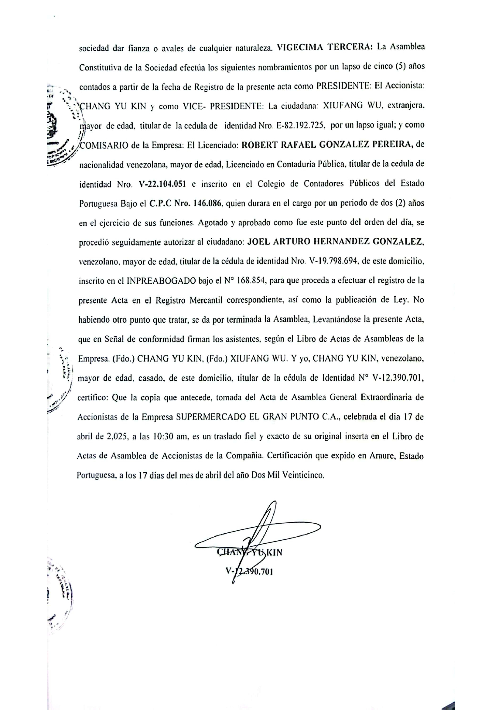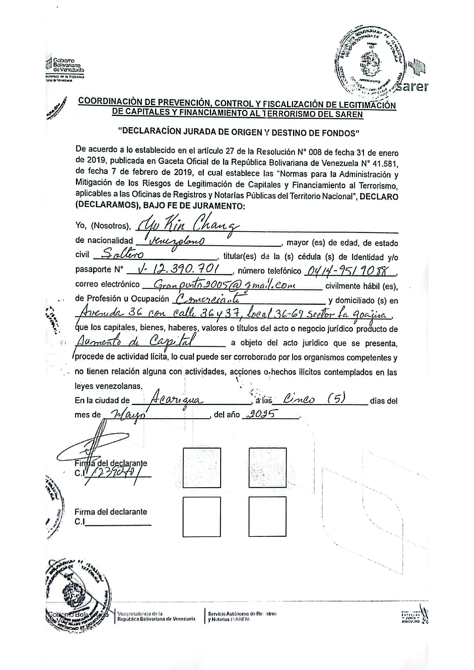 AUMENTO DE CAPITAL DE EMPRESA MERCANTIL, SUPERMERCADO EL GRAN PUNTO C.A.