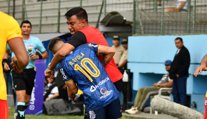 Luego, Oyola se acercó al entrenador, pero también fue recibido con golpe de puño por Farías, por lo que el árbitro del encuentro, Gabriel González expulsó al técnico agresor, en el minuto 18, pero Farías se tardó en abandonar la cancha del estadio Jocay de la ciudad portuaria de Manta.