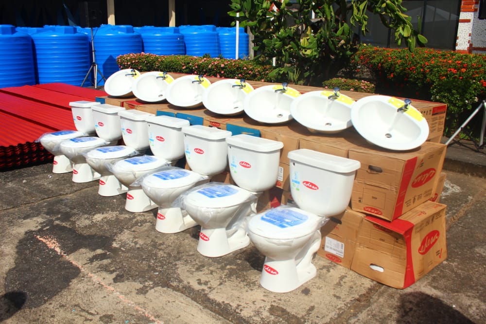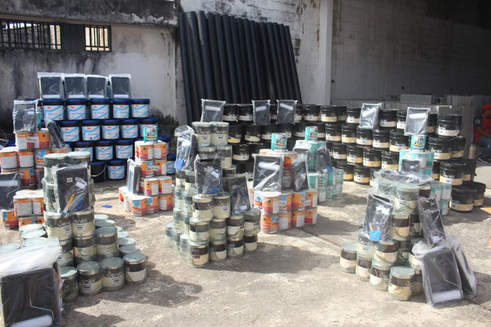 Pintura, inodoros, tubos para sistemas de aguas negras y blancas, láminas de zinc, tanques, bombillos, brochas, entre otros materiales, fueron distribuidos para la rehabilitación de las escuelas, que en total son 45 en los 14 municipios.