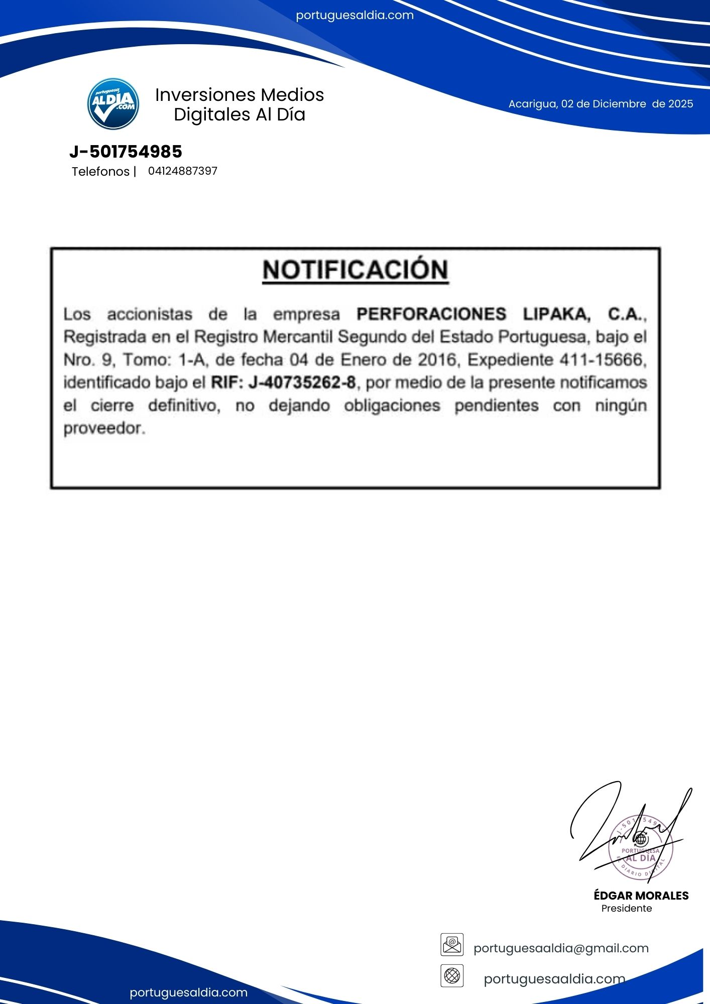 Comunícate con Portuguesa al Día COMUNÍCATE CON PORTUGUESA AL DÍA Comparte tus noticias y novedades con nosotros Escríbenos por WhatsApp Envíanos mensajes, fotos, videos o audios directamente Envíanos un correo Escribe a [email protected] Adjuntar archivo Navegación de entradas CARTEL DE NOTIFICACIÓN | Se hace saber a la ciudadana, MARIA DEL CARMEN LUCENA MENDOZA Cartel de Notificacion: EUGENIA DE LA COROMOTO REYES