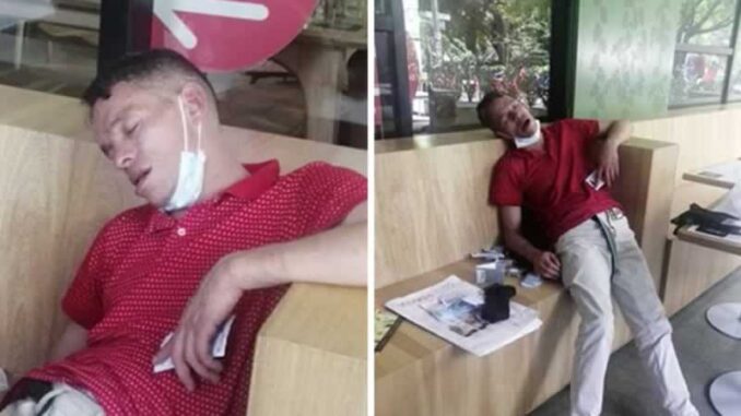 Ocurrió el pasado fin de semana en barrio El Poblado de Medellín, donde un presunto delincuente, que habría robado en un edificio, se quedó dormido en un establecimiento público minutos después de cometer el hurto.