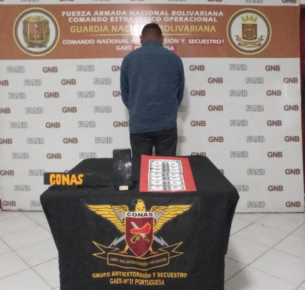 Tras una denuncian ante el CONAS-GAES-31-PORTUGUESA, salió una comisión integrada por ocho (08) Guardias Nacionales Bolivarianos, Conas y un (01) Oficial Subalterno, al mando del Mayor (GNB) León Rojas Comandante del GAES 31 PORTUGUESA, con destino al C.C. «El Indio», ubicado en la Avenida las Lágrimas del Municipio Páez, del Estado Portuguesa, con la finalidad de ejecutar un procedimiento de entrega vigilada, logrando la aprehensión en flagrancia de Eudis José Leal García quien le solicitó supuestamente, a la víctima, la cantidad de dos mil dólares (2.000 $).