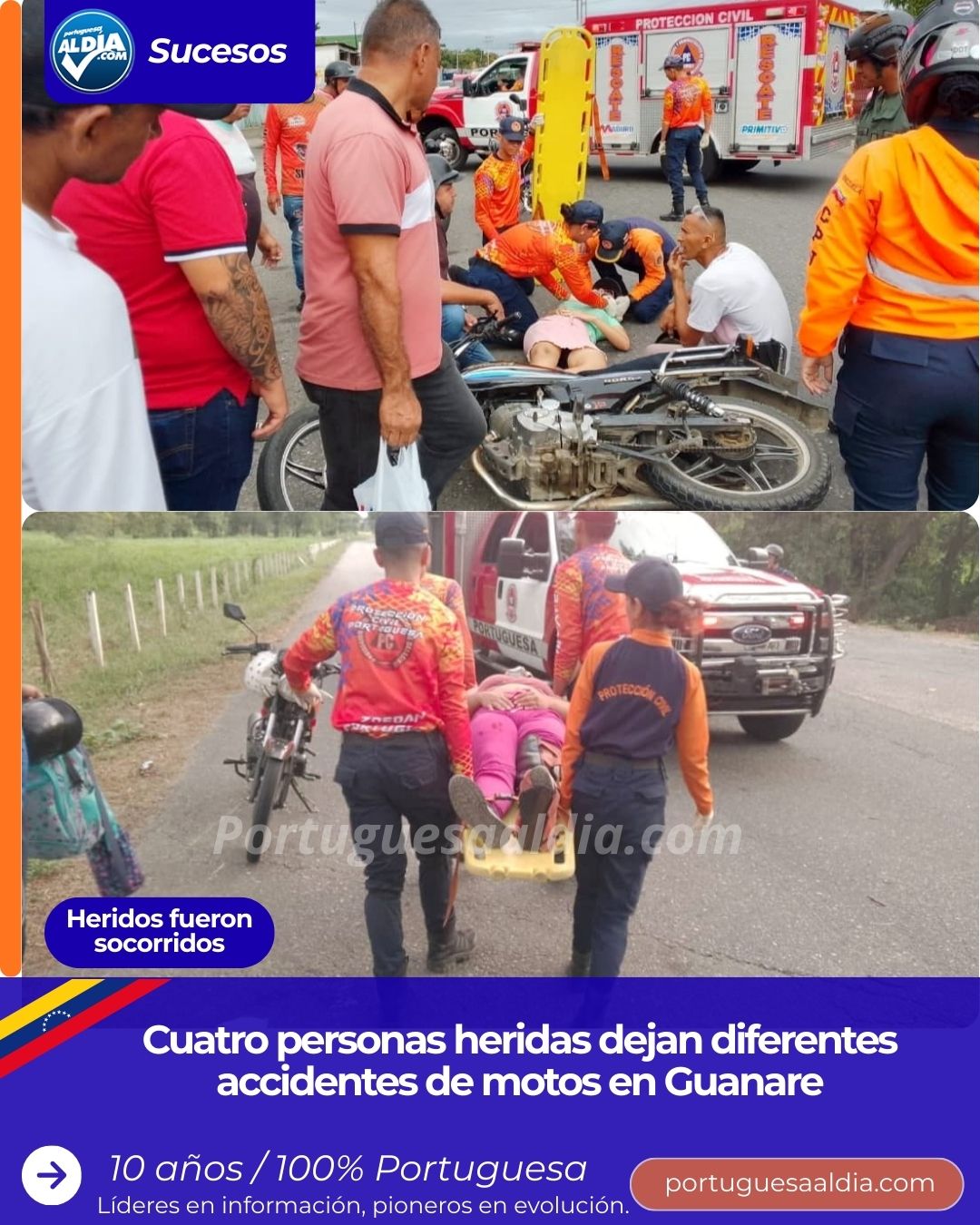 (Miguel Enrique Villavicencio).- Cuatro personas resultaron heridas en diferentes accidentes de motos este jueves 15 de enero en Guanare.