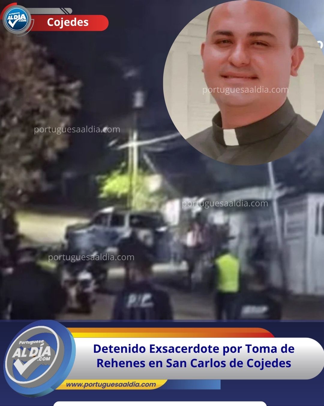 El exsacerdote Jesús Ramírez fue detenido este domingo en San Carlos, Cojedes, tras presuntamente tomar como rehenes a una joven y su familia por problemas pasionales. El hombre, quien portaba un arma de fuego, fue reducido por cuerpos de seguridad sin que se reportaran lesionados.
