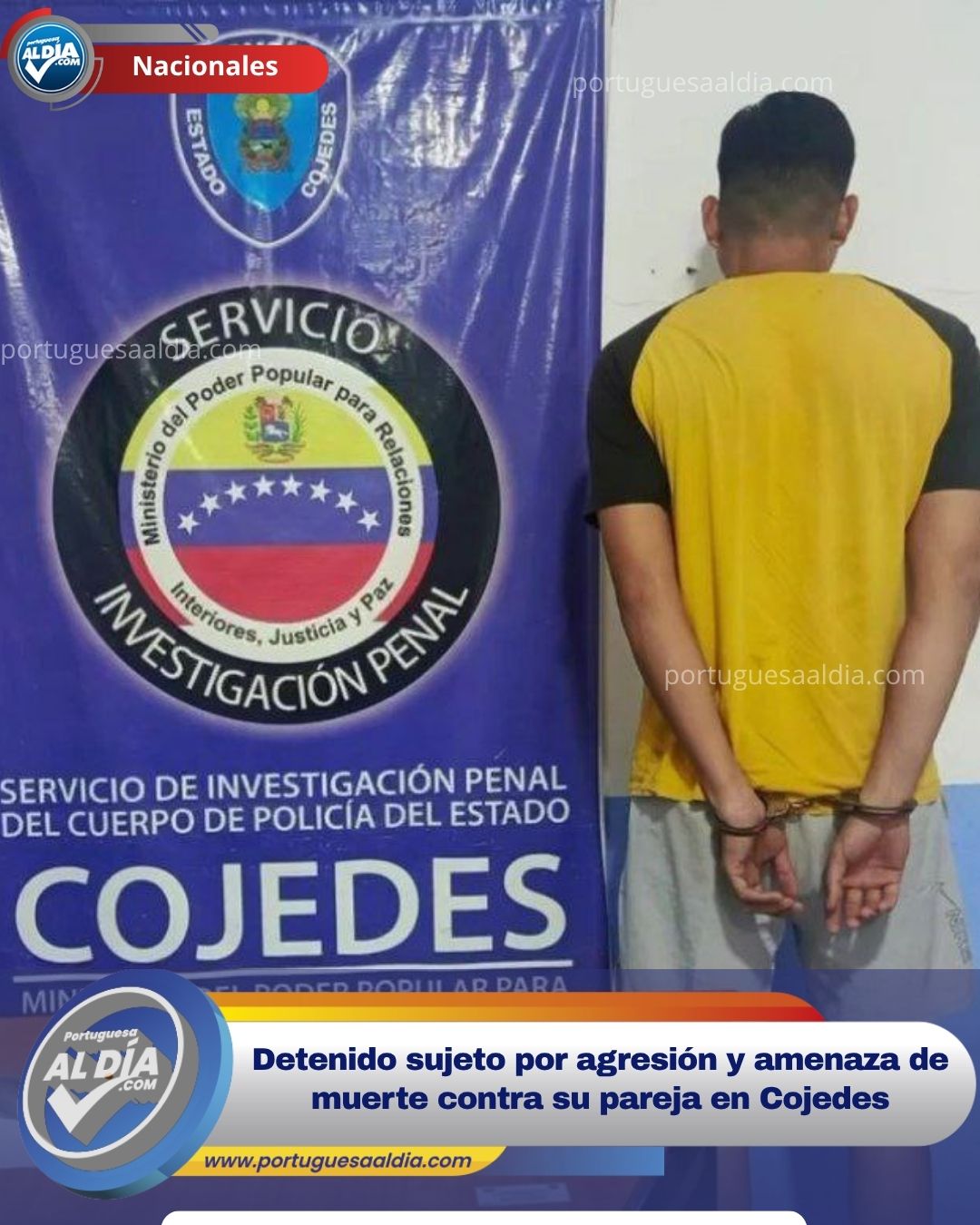 Andrés Reyes, de 33 años de edad, fue detenido este miércoles 1° de octubre por funcionarios de la Policía del Estado Cojedes (PoliCojedes) tras ser denunciado por agresión y amenaza de muerte contra su pareja en el sector «La Herrereña» de San Carlos.