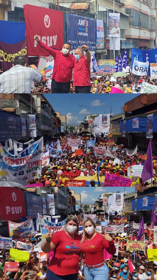 Por su parte Diosdado Cabello Rondón aseveró “es un honor estar aquí en Portuguesa, tierra bolivariana, chavista y revolucionaria; siempre nos encontramos en batallas, hoy les veo la cara; a las mujeres y hombres de Portuguesa, aquí estuvo el comandante Hugo Chávez, lo recuerdo y estar aquí hoy en esta Av. Libertador en pleno 2021 con esta “pepa de sol” y que este de punta a punta, podemos sentir al comandante, aquí nunca ha podido ganar la oposición, ni podrán