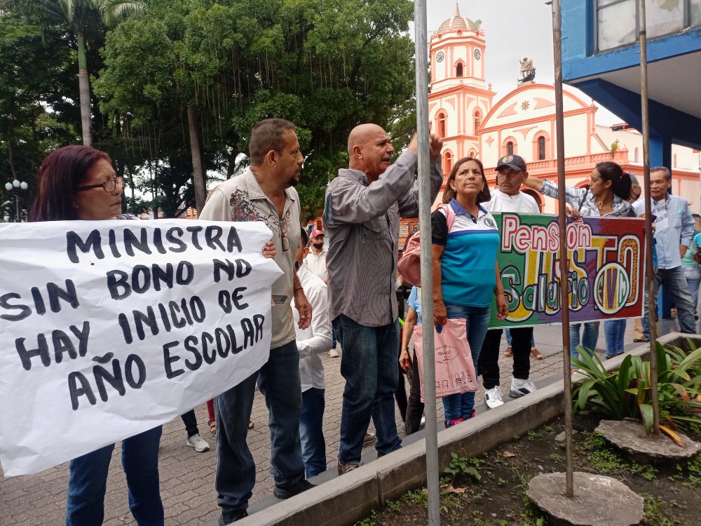 Una vez más docentes activos y jubilados protestaron este jueves frente a la alcaldía del municipio Páez, dado al pago incompleto de Bonos por concepto de Vacaciones y Recreación contemplada en la Contratación Colectiva.