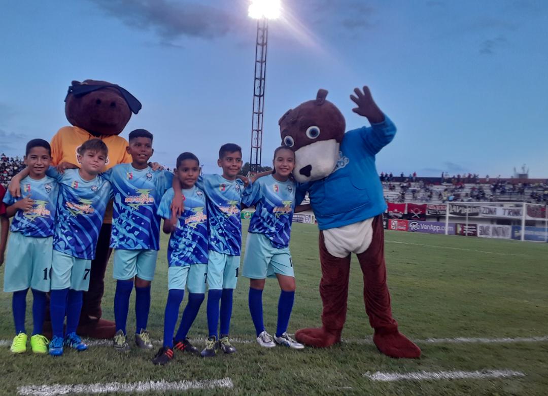 La E.F.M «SUEÑO REAL» Compartió el día viernes 30 de junio en el estadio José A. Páez, uno de sus más anhelados sueños, como fue salir al terreno de juego con los jugadores profesionales de ambos equipos, el Portuguesa F.C y Carabobo F.C, además de tener la oportunidad de patear en el entretiempo una tanda de penales, con las mascotas que acompañaron a los niños y niñas en esta experiencia.