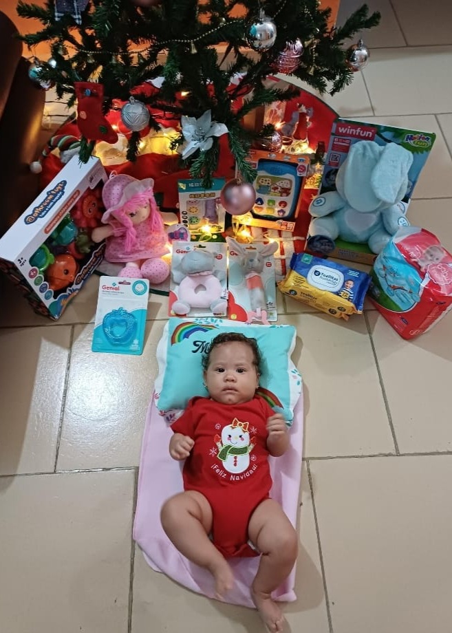 Miranda Colmenarez, celebra su primera Navidad y está hermosa princesa recibió muchos obsequios, aunque ella es el mejor regalo para todos en su familia.