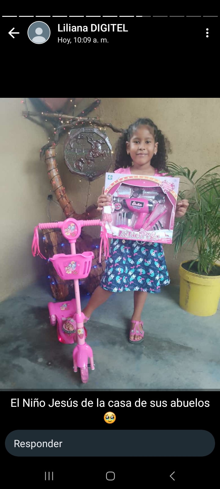 Con mucha emoción Georliana Burgo, comentó que el niño Jesús le trajo su monopatín, una barbie, una carpa y un set de peluquería, con lo que jugará con sus amiguitas y primas.