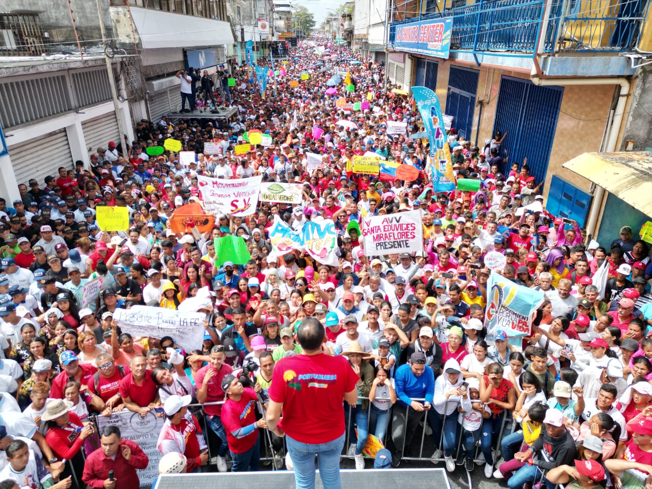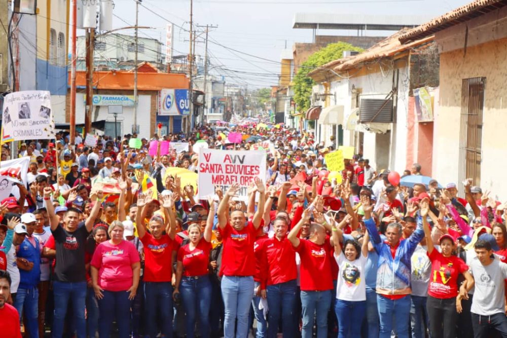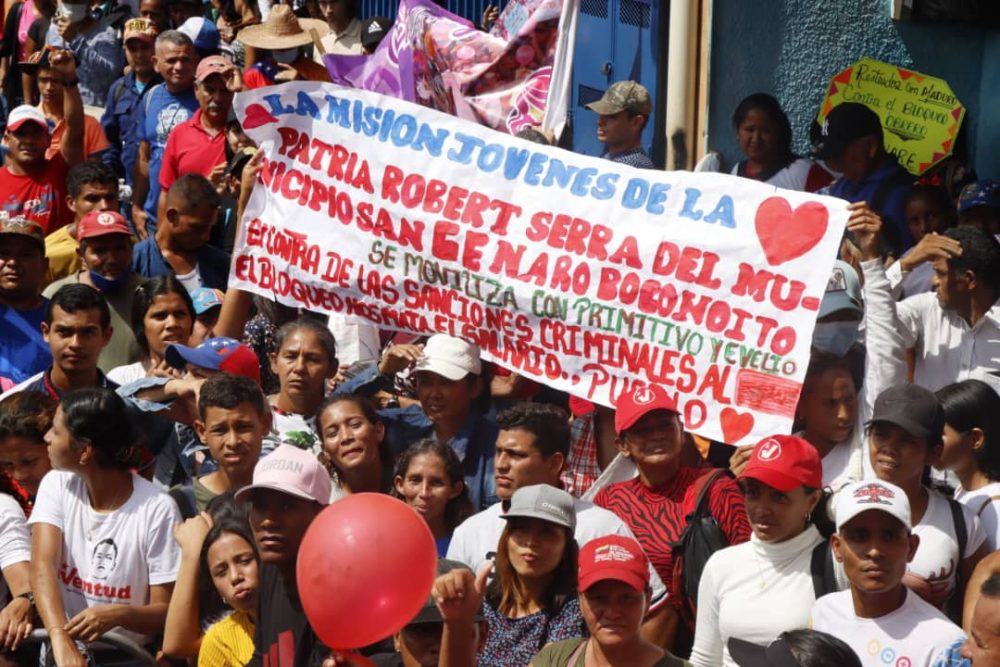 Gobernadores, alcaldes y diputados que militan en el gobernante Partido Socialista Unido (PSUV) repitieron, en cada una de las marchas, su pedido para que se levanten las restricciones financieras sobre Venezuela, especialmente las impuestas por Estados Unidos.