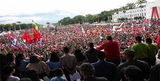 En Caracas, miles de simpatizantes marcharon desde varios puntos de la ciudad hasta el lugar de la concentración, en el que dirigentes del chavismo cargaron contra la oposición, a la que achacan el incumplimiento del acuerdo suscrito en noviembre pasado, en el marco del diálogo político que mantienen las partes en México.