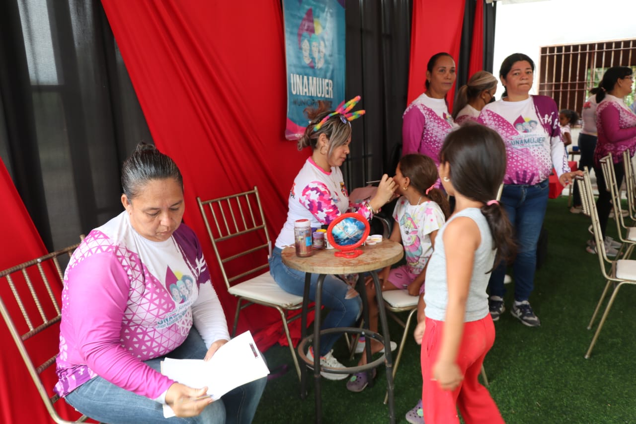 Por su parte, la primera combatiente Marilys Pérez de Torrealba con el programa Niño Jesús entregó una canastilla para un bebé próximo a nacer. Unamujer, por su parte, atendió con peluquería y pinta carita a los pequeños de la casa.