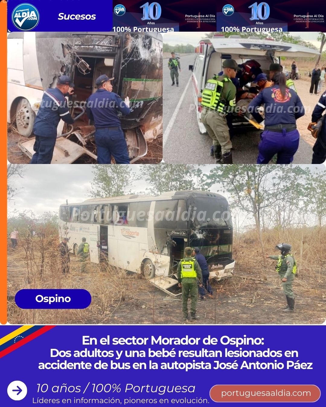 Comisiones de los bomberos, Policía Nacional Bolivariana, Protección Civil, Vialpo y de la Unidad Especial de Seguridad y Auxilio Vial del Comando de Zona № 31 de la Guardia Nacional Bolivariana en el estado Portuguesa, acudieron al sitio para socorrer a los lesionados, iniciar las investigaciones y brindarle seguridad al resto de los pasajeros.