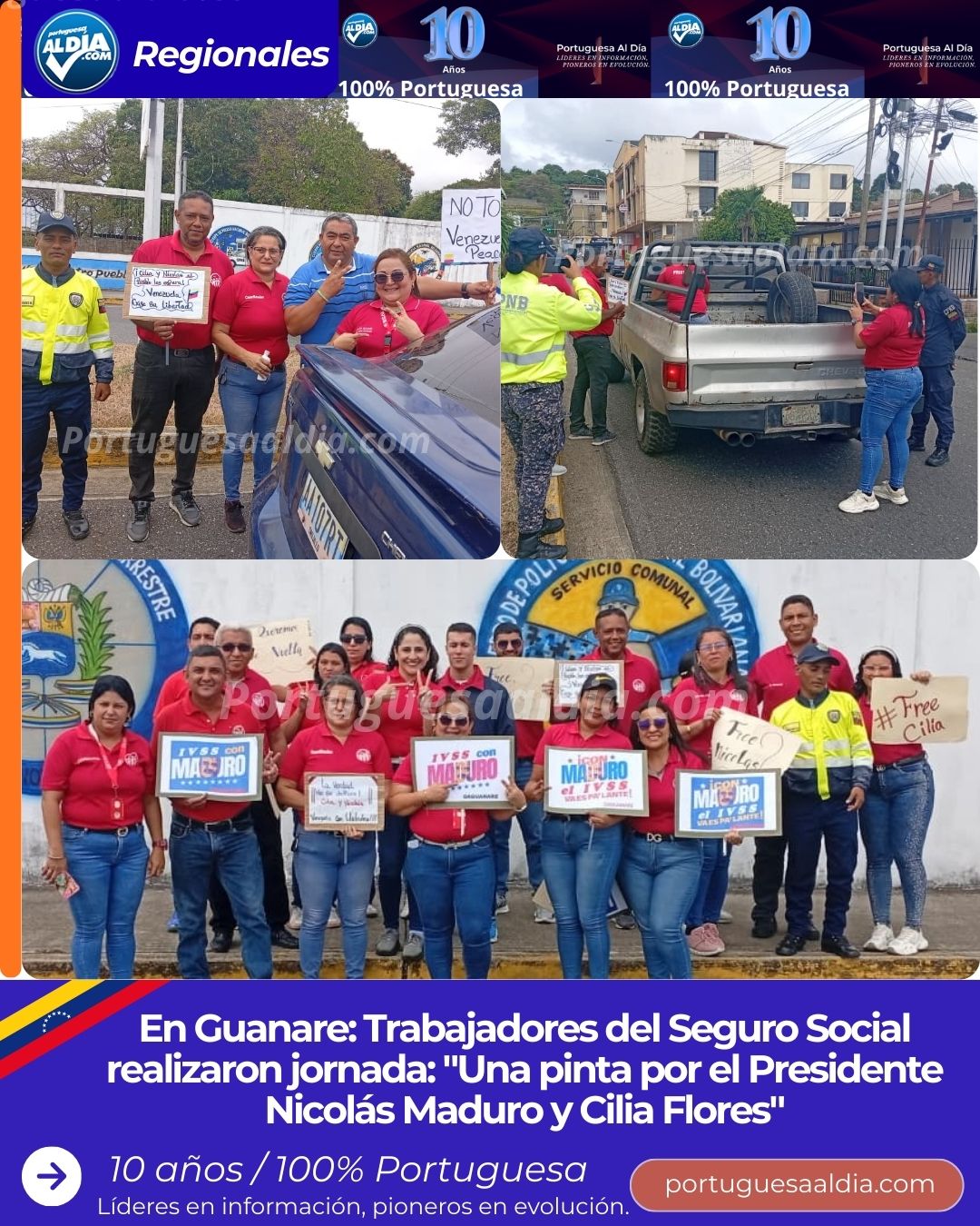 (Miguel Enrique Villavicencio).- Trabajadores del Instituto Venezolano de los Seguros Sociales (IVSS) en Guanare participaron este martes 27 en una actividad de calle denominada «Una pinta por Maduro y Cilia».