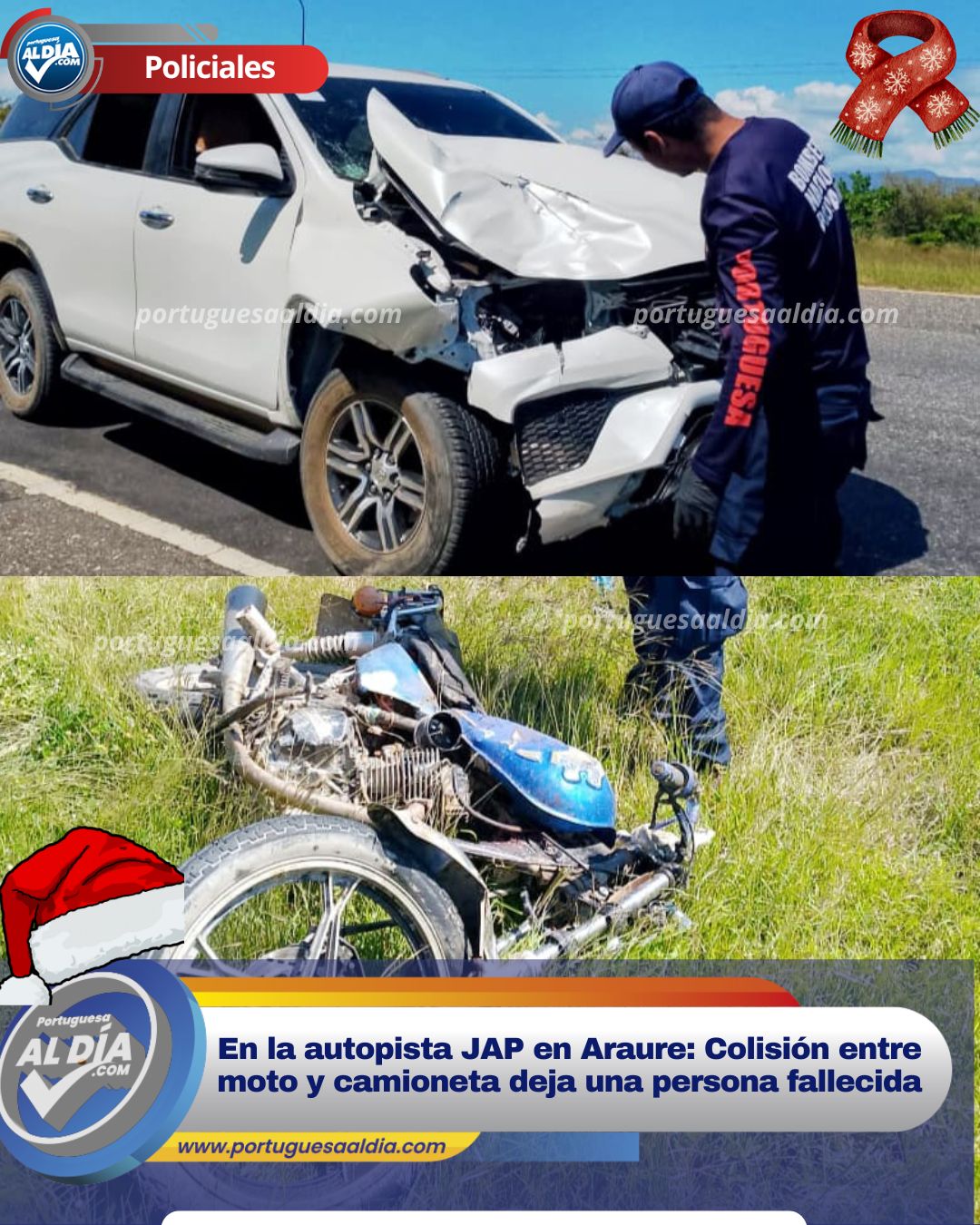 (Miguel Enrique Villavicencio).- Un hombre perdió la vida de manera trágica en una colisión entre moto y auto que se registró este domingo 7 de diciembre en la autopista José Antonio Páez, a la altura de la estación de servicio Páez 1 en Araure.