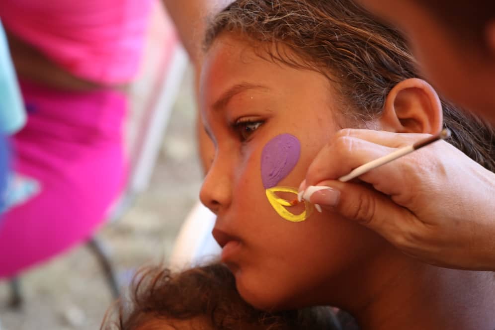 Además, el equipo de Unamujer brindó atención a los más pequeños de la comunidad con pintacaritas y trenzado.