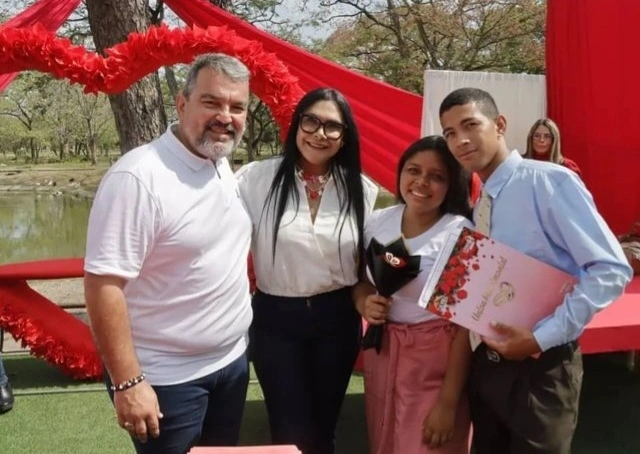 El alcalde Rafael Torrealba contó con el acompañamiento de la primera combatiente, Marilys Pérez de Torrealba, quienes dieron la bendición a 50 parejas que hacen vida en el municipio Paez.