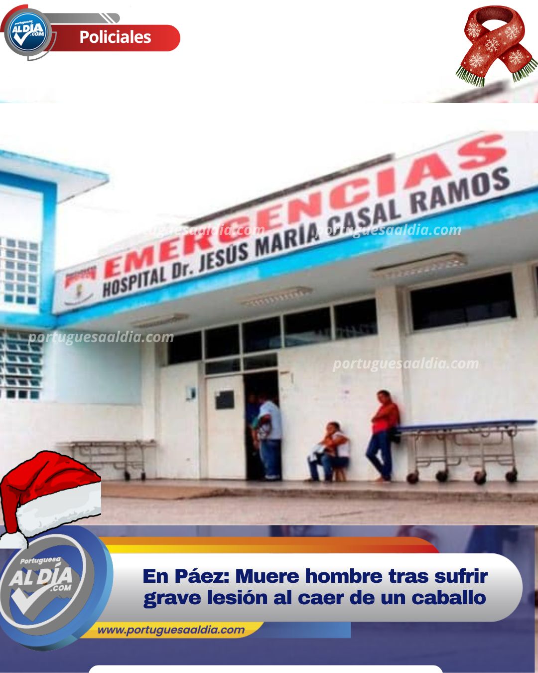 (Miguel Enrique Villavicencio).- Un hombre murió a causa de la grave lesión que sufrió al caer de un caballo, lamentable caso ocurrido este pasado jueves 25 de diciembre en una granja ubicada en el caserío Espinital, jurisdicción del municipio Páez