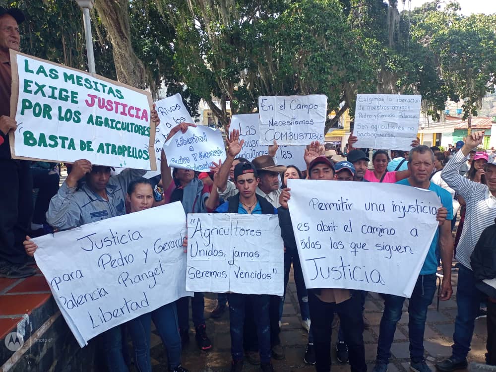 Agricultores de las Mesitas de Niquitao, se trasladaron a la plazae Bolivar de Bocono, solicitando y la Libertad de los dos AGRICULTORES que están detenidos por transportar dos pimpinas de gasolina de 60 litros.