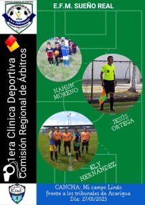 La escuela deportiva de fútbol menor Sueño Real, ubicada en la Av. 27 con calle 26 frente a los tribunales de Acarigua, realizará este viernes 27/01/2023 la 1era clínica deportiva de reglamento de fútbol Campo.