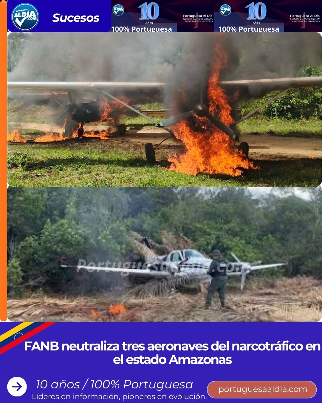 En el marco de la Operación Escudo Bolivariano, la Fuerza Armada Nacional Bolivariana (FANB) inutilizó tres aeronaves vinculadas a grupos transfronterizos del narcotráfico en el municipio Atabapo del estado Amazonas. El procedimiento fue ejecutado por Unidades de Reacción Rápida de Combate (URRA) adscritas a la REDI Guayana, tras la detección de dos pistas clandestinas en zonas selváticas. Las aeronaves, identificadas como una Cessna 206 (YV-2597), una BE-58 (PR-LLR) y una con matrícula PS-FLX, operaban con los transponders apagados y carecían de planes de vuelo autorizados por el INAC, violando flagrantemente la soberanía nacional.