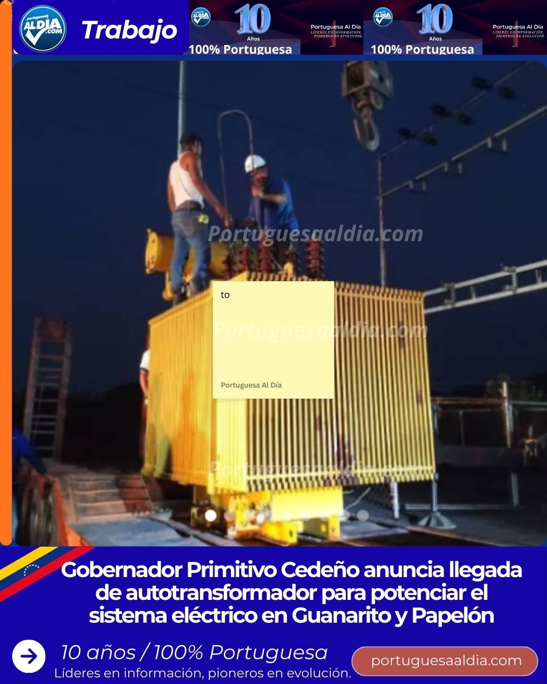 En un esfuerzo articulado para consolidar la estabilidad de los servicios públicos en el estado, el Gobernador de Portuguesa, Primitivo Cedeño, anunció la llegada de un nuevo autotransformador de alta capacidad que fortalecerá directamente el suministro de energía en los municipios Guanarito y Papelón.