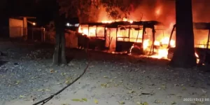 Un total de siete unidades de la Ruta Estudiantil del estado Portuguesa se incendiaron en el sitio donde se encuentra un grueso lote de autobuses de dicha institución, en la sede del MTC en Guanare, avenida Rotaria.