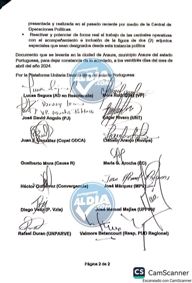 La exclusiva periodistica de portuguesaaldia.com detalla que Lucas Segura, Edgar Rivero y José David Angulo, tendrán que darle a cada firmante del documento, un cargo; en el nuevo «comando de campaña que se realizará en Portuguesa».