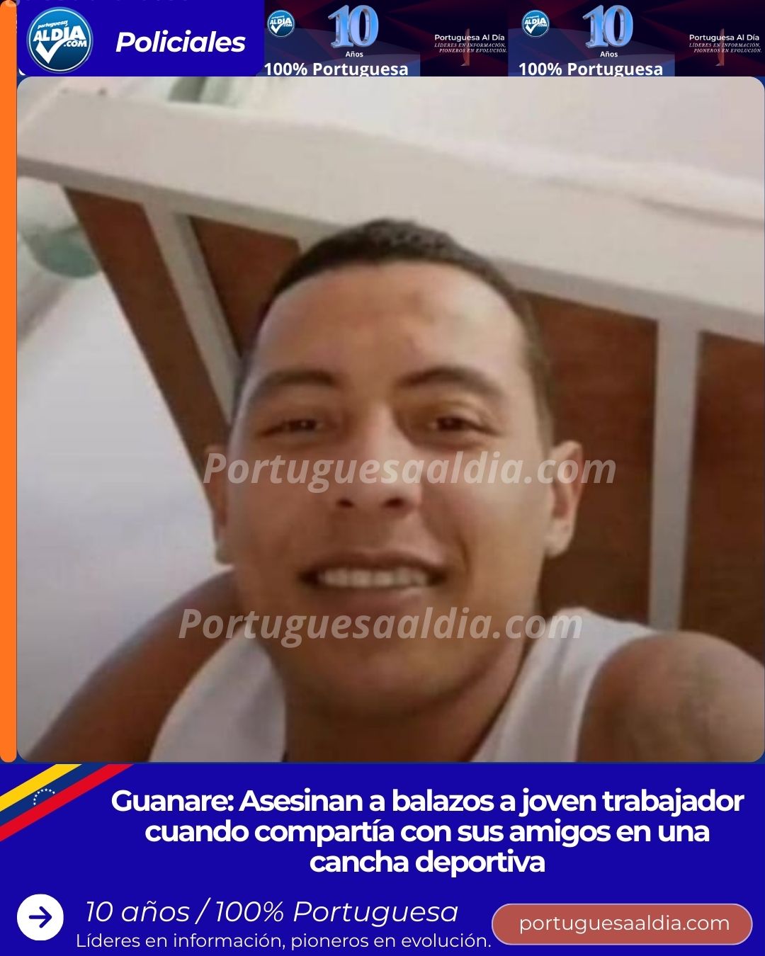 (Miguel Enrique Villavicencio).- Un joven trabajador fue asesinado a tiros por un sujeto, hecho de sangre que sucedió en horas de la noche de este viernes 30 de enero, en una cancha deportiva en la calle 10 entre avenidas 2 y 3 del sector 2 del barrio 19 de Abril de Guanare.