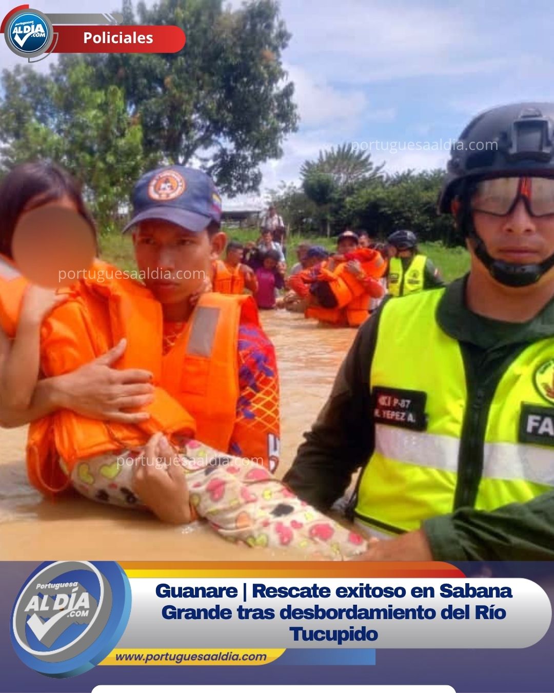 En un operativo conjunto, Protección Civil y la Guardia Nacional rescataron a 10 personas en el Caserío Sabana Grande tras el desbordamiento del Río Tucupido. Los equipos evacuaron a 4 adultos, 3 adultos mayores y 3 niños, quienes recibieron atención inmediata y apoyo psicológico. El acceso al área se complica debido a daños significativos en el puente que conecta con el Caserío Guafillas.