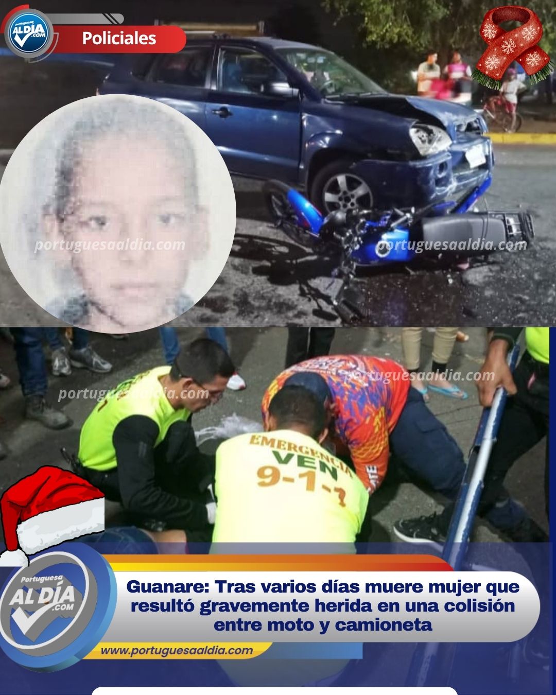 Este trágico accidente en el que también resultó lesionada otra persona, ocurrió la noche del pasado 24 de diciembre en la vía principal del barrio La Pastora de Guanare.