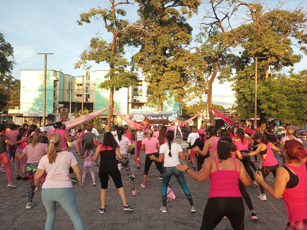 Bajo el lema «Tócate para que no te toque» y en el marco de las actividades enmarcadas en el mes de la lucha contra el cáncer de mama, este jueves los guanareños vistieron de rosa y se dieron cita en la plaza Andrés Bello de Guanare para disfrutar de una tarde fitness.