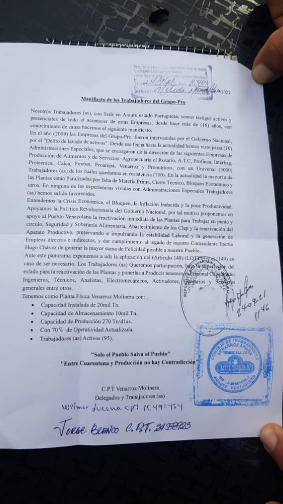 La masa laboral ha solicitado a través de un comunicado; asumir la administración de la empresa, pues consideran que hay profesionales aptos para sacar adelante a Proarepa, por tanto han hecho un escrito; para el presidente Nicolás Maduro; para que se les tome en cuenta.