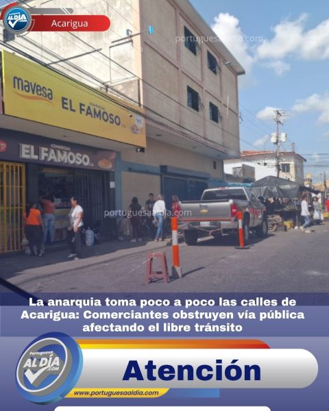 Vecinos y transeúntes de la calle ubicada a una cuadra de la Fiscalía del Antiguo Banco Canaria y del Edificio Girasol, en Acarigua, denuncian que varios comerciantes de la zona impiden el estacionamiento y circulación vehicular al colocar mecates, objetos y mercancía en la vía pública.