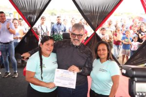 Además de la activación del pozo, el Alcalde de Páez en un “acto de justicia social”, hizo entrega de la adjudicación del terreno a la AVV Madres Luchadoras, donde está previsto la ejecución de un proyecto urbanístico; y además, entregó a las líderes de la comunidad la certificación del lote de terreno asignado para el proyecto de la escuela.